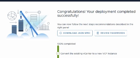 - - Click Review Passwords, to review the passwords entered during the wizard in-case any need to be written down again or to confirm that a task failed because of failed login. The passwords can also be retrieved via the SDDC Manager and VCF Operations APIs.