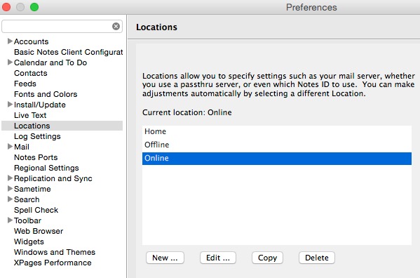 2. Choose Location and then the current location, typically Online. Click Edit.
